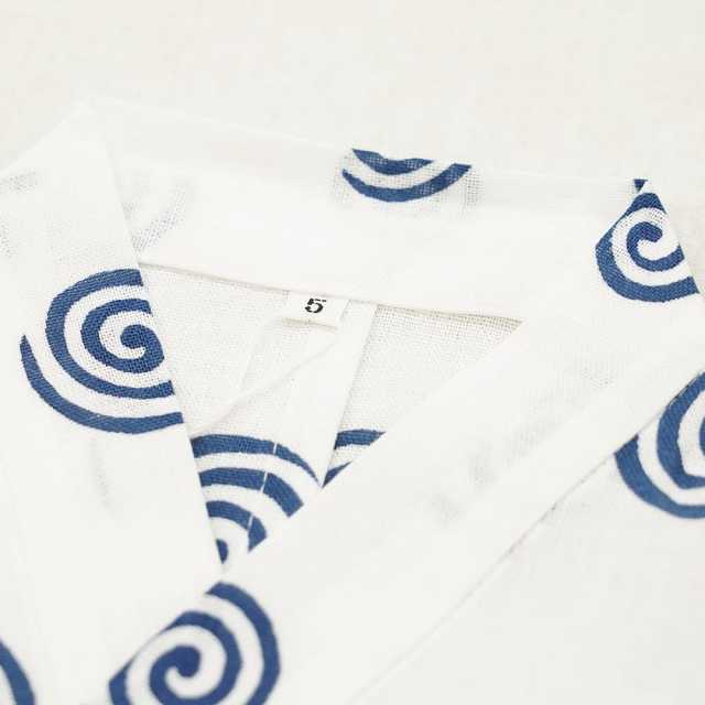 素材:東稀(竺仙:手拭素材)※手拭の素材に使用している、「稀」と呼んでいる生地になります。今では珍しい、昔ながらの糸番手が太く、織も粗目の生地になっております。こちらは水分等の吸収性やその後の速乾性が良く、少し粗めの触感は暑い時期に心地よいと思います。その素材を子供の甚平用に染め、仕立てました。