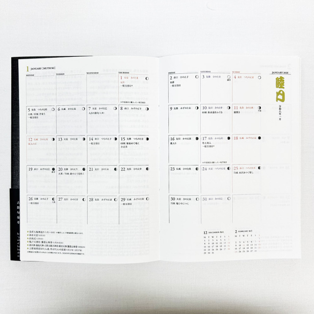 また、より季節と共に暮らす…というコンセプトに合わせて、ウイークリー、マンスリースケジュールを2026年1月から2027年3月まで掲載。1月からでも4月からでもお使いいただける仕様です。