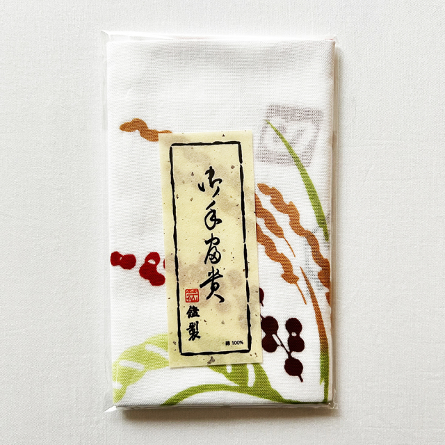 竺仙では手拭の素材にもこだわり、「稀」と呼んでいる今では珍しい、昔ながらの糸番手が太く、織も粗目の生地を使っております。これは実際に使用してみると気づかれると思いますが、水分等の吸収性やその後の速乾性が良く、手拭本来の用途に合った、手に馴染む質感のものを昔から使い続けております。