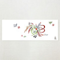 神聖な場所であり、厄を祓う結界の意味を持つ締め輪を、神様の使いとされる白蛇がくぐっている様子を描きました。巳乗(みの)るほど、頭を垂れる稲穂かな…。五穀豊穣、そして実り多いとしになりますように。