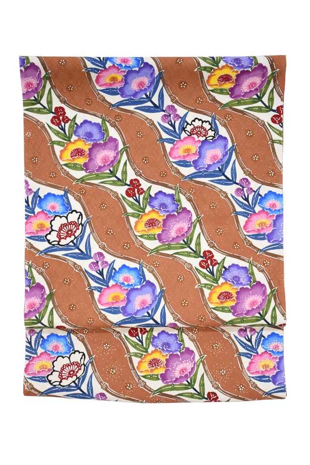 中のお花が飛び出すように立体的な色使いがこの帯のポイントです。