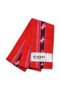 【琉球かすり半巾帯】 赤地紺白絣ブルー縞