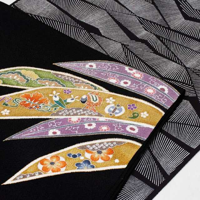 黒地の縮緬地に絶妙なバランスで配された笹の葉。
