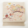 江戸友禅の手描き名古屋帯。松竹菊の吉祥柄をパステルトーンの可愛らしい配色で染めました。江戸友禅らしい少しペールな色合いが甘くなり過ぎず、 大人かわいい雰囲気を醸しているので、長くお使いいただけると思います。
