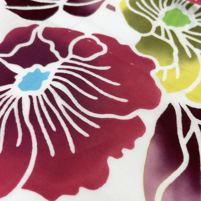 染めは型に沿って糊を施し染料を注ぎ込む、注染という染色法を採用しております。