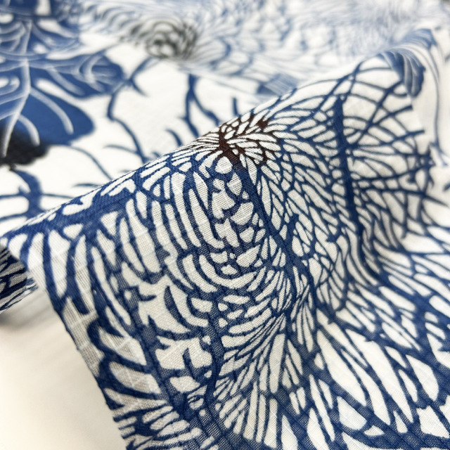紅梅織はセミの羽を思わせる様な、夏の時期に涼しさを感じていただく為の素材です。格子状の骨の部分は40番手の太目の糸を使用し、薄い透き通った部分は80番手の細目の糸を使い、その涼感を醸し出しております。竺仙では昭和の初めより開発し、使用してきております。
