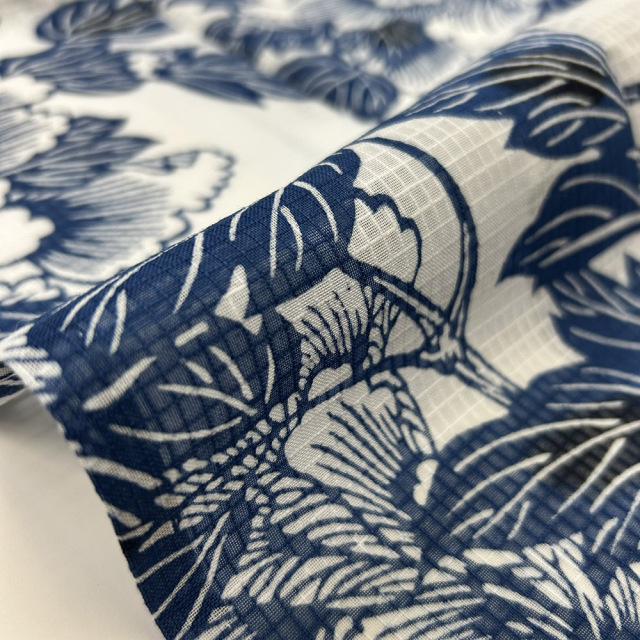 紅梅織はセミの羽を思わせる様な、夏の時期に涼しさを感じていただく為の素材です。格子状の骨の部分は40番手の太目の糸を使用し、薄い透き通った部分は80番手の細目の糸を使い、その涼感を醸し出しております。竺仙では昭和の初めより開発し、使用してきております。