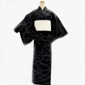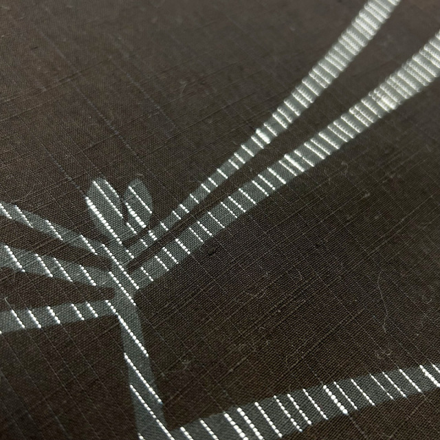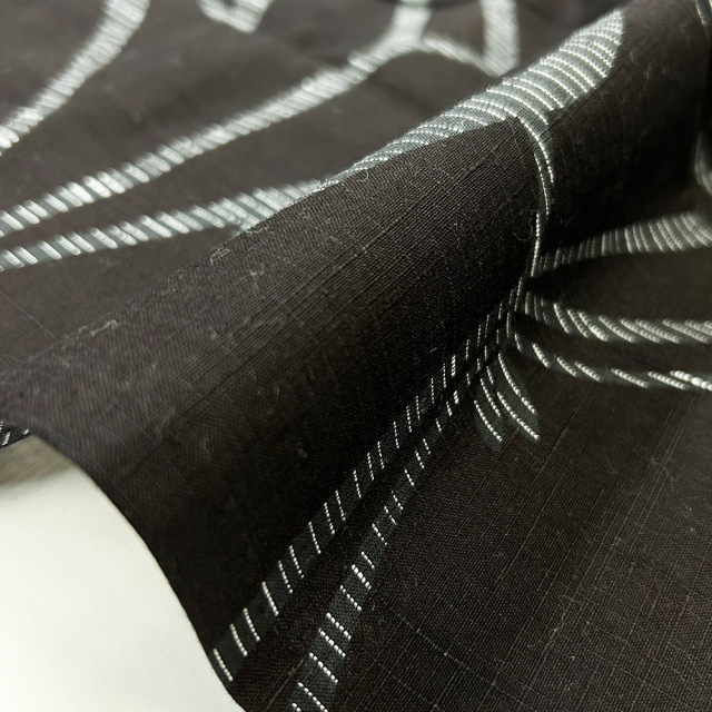 竺仙では「まつとん」の相性で親しまれている松葉とんぼ。大振りな柄ですが、黒紬なので木綿の普段着物のようにお召しいただけます。