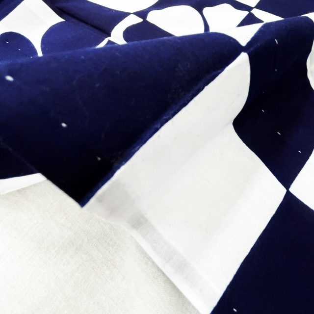 配色はシンプルですが、所々、市松柄に組み込まれたハイビスカスが変化を生み、程よい華やかさと立体感をプラスしています。