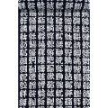 遠目には格子のように見えて、近くで見ると実は文字が びっしり…。 この魚は何?なんていう会話で場を和ませてくれそうな魚文字の浴衣。漢字を意匠として用いた浴衣は、 染め上がって仕立てて着てしまえば、他の柄と同じように見えますが、文字としてきちんと読めなければいけないので、型紙の段階で、かなり手が掛かっております。そんな職人さんの工夫と技が詰まった浴衣でお祭りに繰り出してみてはいかがでしょうか。