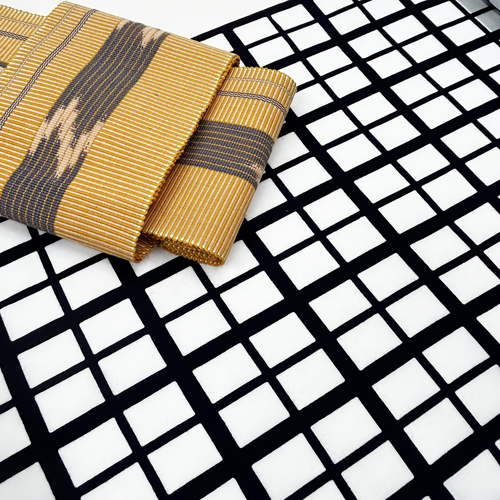 太目の格子の中に細い格子が入った高麗屋格子。古くから愛される意匠です。歌舞伎柄らしくシンプルでありながら粋で、遠目にも格好よく目につく優れもの。格子もちょうどいい大きさなので、ぜひ、女性にもお召しになっていただきたいと思います。白地はちょっと気後れするという方にも白紺のバランスが絶妙なので、一度チャレンジしてみてはいかがでしょうか。