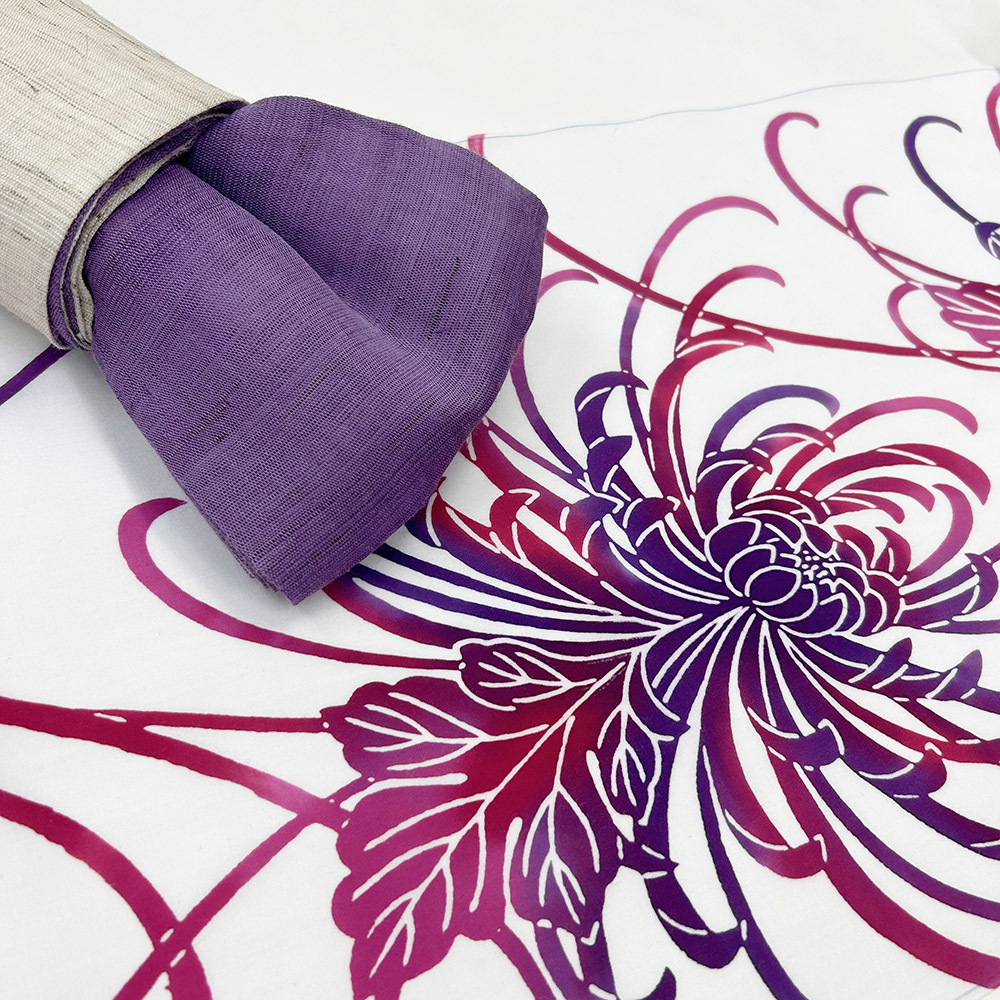染めは型に沿って糊を施し染料を注ぎ込む、注染という染色法を採用しております。