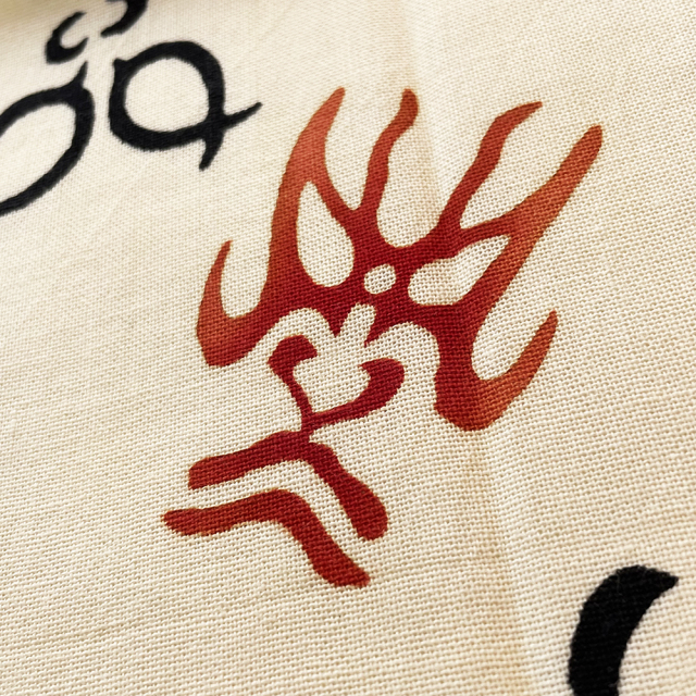 初代の市川團十郎が始めたといわれる歌舞伎の隈取。それぞれに役柄の性格を表しています。ユニークなもの、雄々しいもの…、さまざまな隈取を総柄にしました。