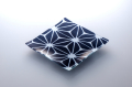 『漣17』(H1.8cm×W17cm×D17cm)。その名の通り、皿縁が漣のようにゆったりと波打つ水面のようなデザインになっております。ガラスに挟んだ生地の種類によって、透け感や光沢の味わいが多彩に変化するのもこのシリーズの特徴です。こちらは綿絽地染の麻の葉を挟み込んでいます。テーブルウエアとしてだけでなく、アクセサリーを置いたりなど自由な発想でお使いいただければと思います。