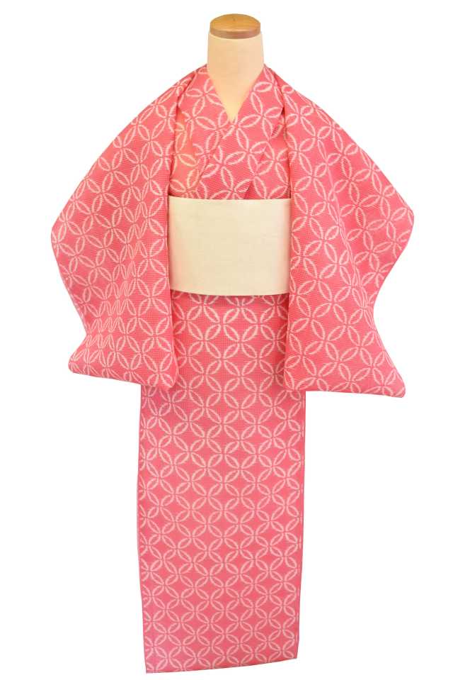 【反物】女性 『絹紅梅』ピンク地絣七宝繋